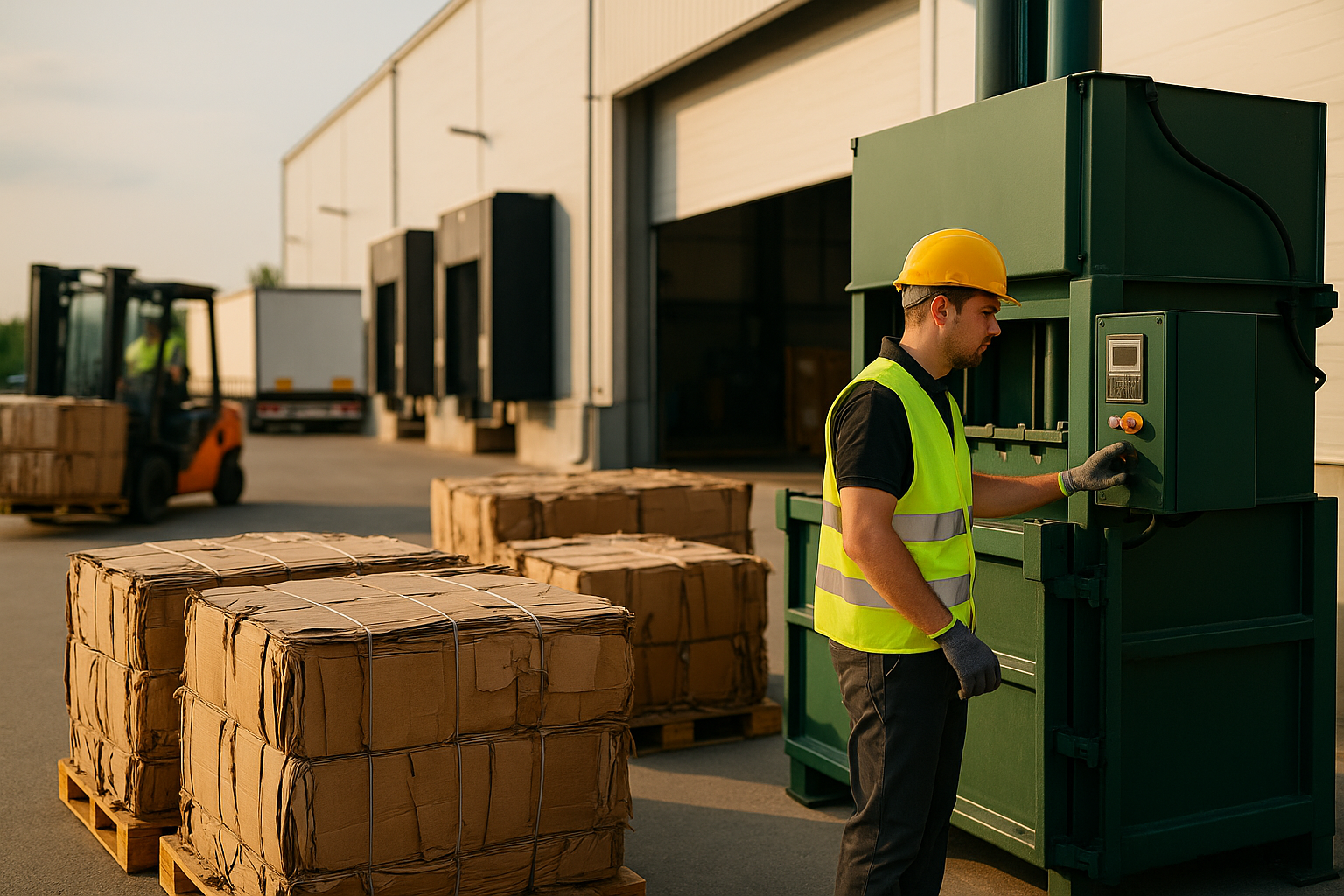 Când intri într-un depozit mare într-o dimineață cu livrări peste livrări, realitatea te lovește înaintea oricărei teorii. Paleți care alunecă pe culoare, cutii desfăcute pe repede înainte, benzi adezive care scârțâie, iar într-un colț, inevitabil, se strânge muntele de carton. Acolo, între stivuitoare și rampe, se decide dacă logistica curge sau se blochează.